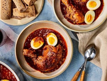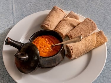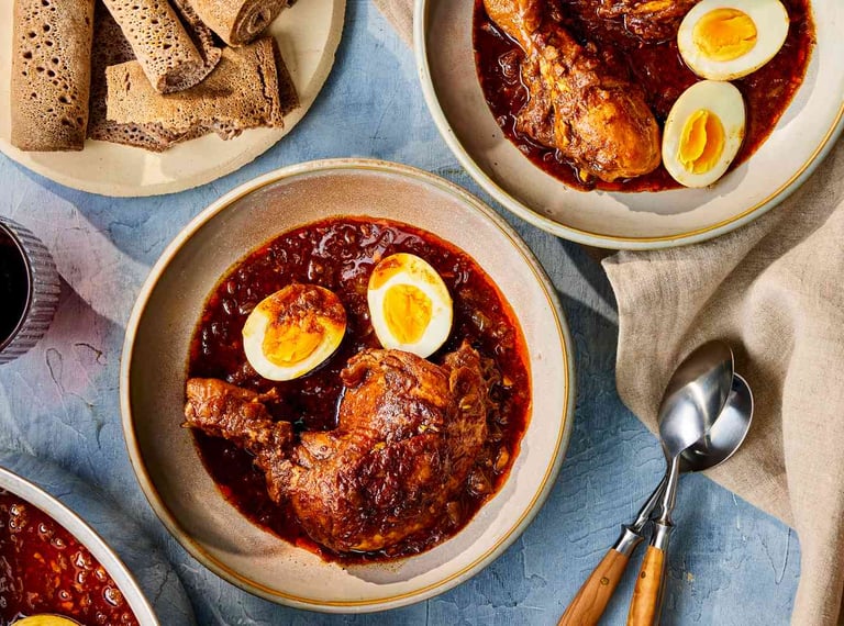 Slow-cooked chicken stew infused with a rich blend of herbs, spiced butter, and berbere chili.