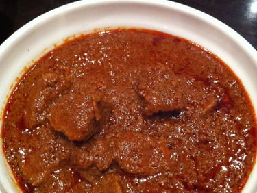 Roasted and finely ground chickpeas simmered in onion, ginger, garlic &chili.